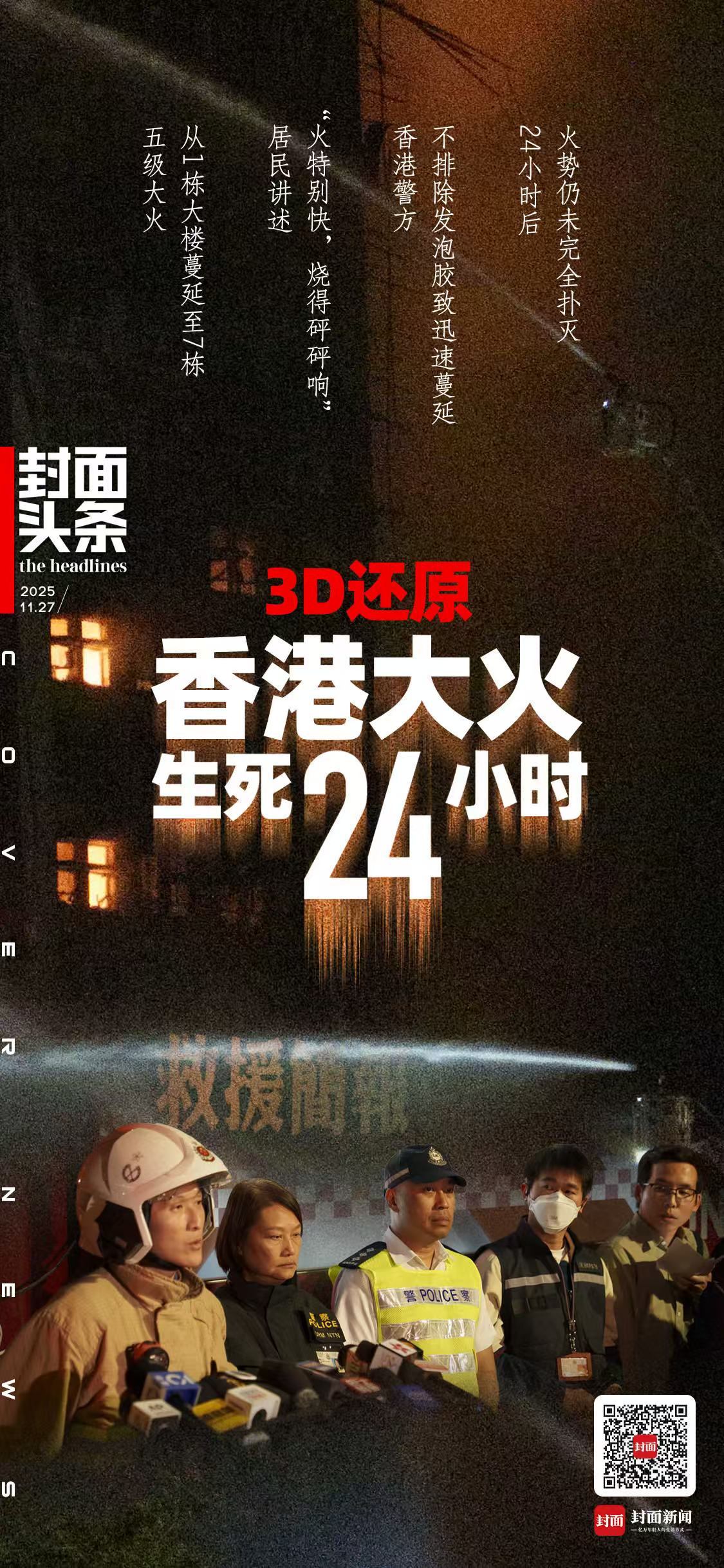 11月26日下午,香港大埔宏福苑发生火灾,大火迅速从一栋大楼蔓延、扩大至七栋,24小时过去,火势仍未完全扑灭。截至27日下午,本次火灾已致55人死亡,72人受伤。目前救灾仍在继续。